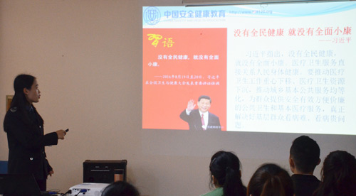 講座主要圍繞:遇到緊急情況和意外事故如何緊急救護(hù)、健康的生活方式以及中醫(yī)養(yǎng)生知識(shí)、霧霾對(duì)人體的危害、環(huán)境污染的危害和自我防護(hù)以及肩周炎、頸椎病等慢性職業(yè)病如何預(yù)防治療等方面展開(kāi)。